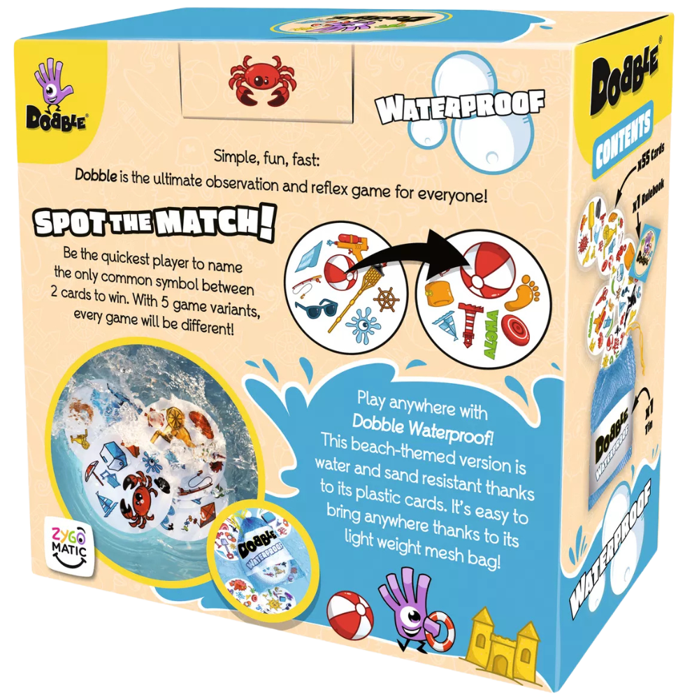 The Dobble Beach card game will be great entertainment for your kids on a vacation. The cards with beach-themed pictures are waterproof so you can play them virtually anywhere!