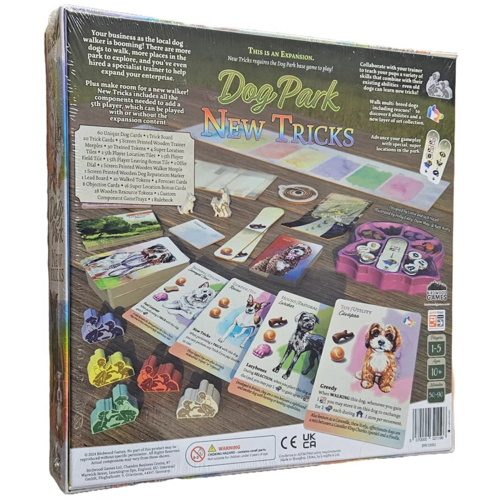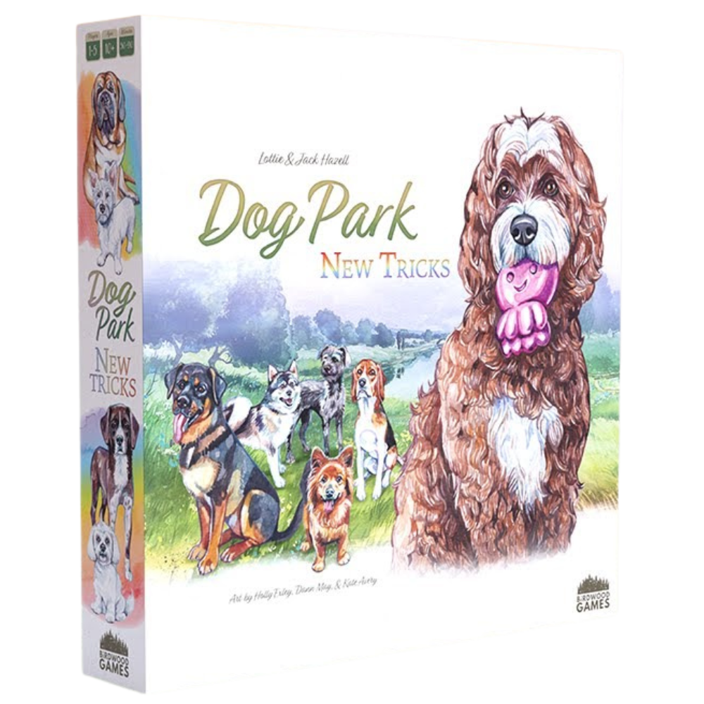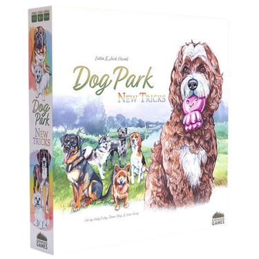 Dog Park: New Tricks adds three major elements to the Dog Park board game: Multi-breed dogs, Trick training, and Super Locations. You are still trying to become the most accomplished walker by earning the most Reputation, but now you have more layers of strategy to explore and use to your advantage.
