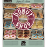 In Donut Shop, players will be taking turns placing Donut Tiles in the Display Case, earning points based on how many donuts of the same type are connected. Players then have the opportunity to box groupings of donuts in the Display Case in order to fulfill customer requests from their Order Cards and earn extra money.