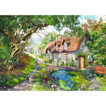Flower Hill Lane is tucked away on the edge of a village, the sort of place you might stumble upon if you enjoy exploring the countryside on foot (or by bike). Historic thatched cottages nestle amongst the trees and flower-filled banks. Life here is quiet; ducks relax on a small pond, a cat snoozes in the dappled shade and you can almost hear the birds chirping and the bees buzzing.