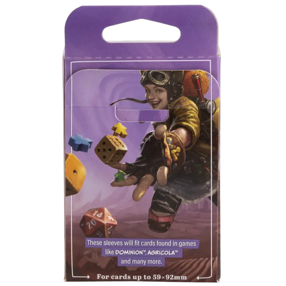 Each pack comes with 100 European Standard sleeves that fit board game cards measuring up to 59x92 mm. The sleeves are made in a thick 100 micron quality and are made to last. Keep the box to store and neatly organise cards in your games – it fits 70+ sleeved cards.