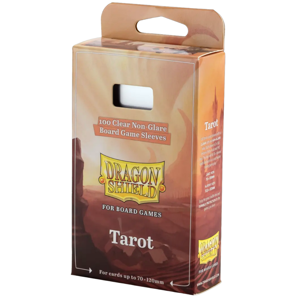 Each pack of Dragon Shield Tarot sleeves comes with 100 sleeves that fit board game cards and tarot cards measuring up to 70x120 mm. The premium sleeves are made in a thick 100 micron quality and are made to last. Keep the box to store and organise cards in your games – it fits 70+ sleeved cards.
