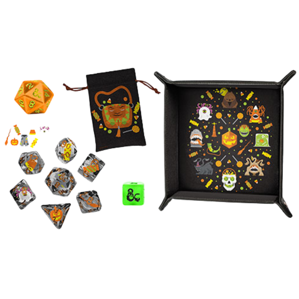 A new addition to this spooky season is the Halloween Haunt Advent Calendar which includes all the accessories you need to play! Countdown the 10 days to Halloween with the official D&D advent calendar that includes a dice tray, a custom D&D inclusion dice set, a D&D glow in the dark die, an exclusive metal d20, and a dice bag to carry your loot!