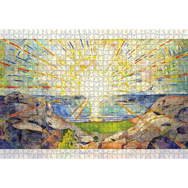 At a staggering 25 feet long and 14 feet tall, depicts a glowing sunrise over the rocky archipelago off Kragerø, Norway, and is considered one of the greatest achievements of modern mural painting. Edvard Munch’s fascination with nature and Vitalism emphasised the sun as an energy-giving force, and the symmetry, structure, and power of this painting enforce its significance. The Sun continues to shine to this day in the enormous front space of Oslo University’s assembly hall and remains one of Munch’s most recognisable masterpieces.