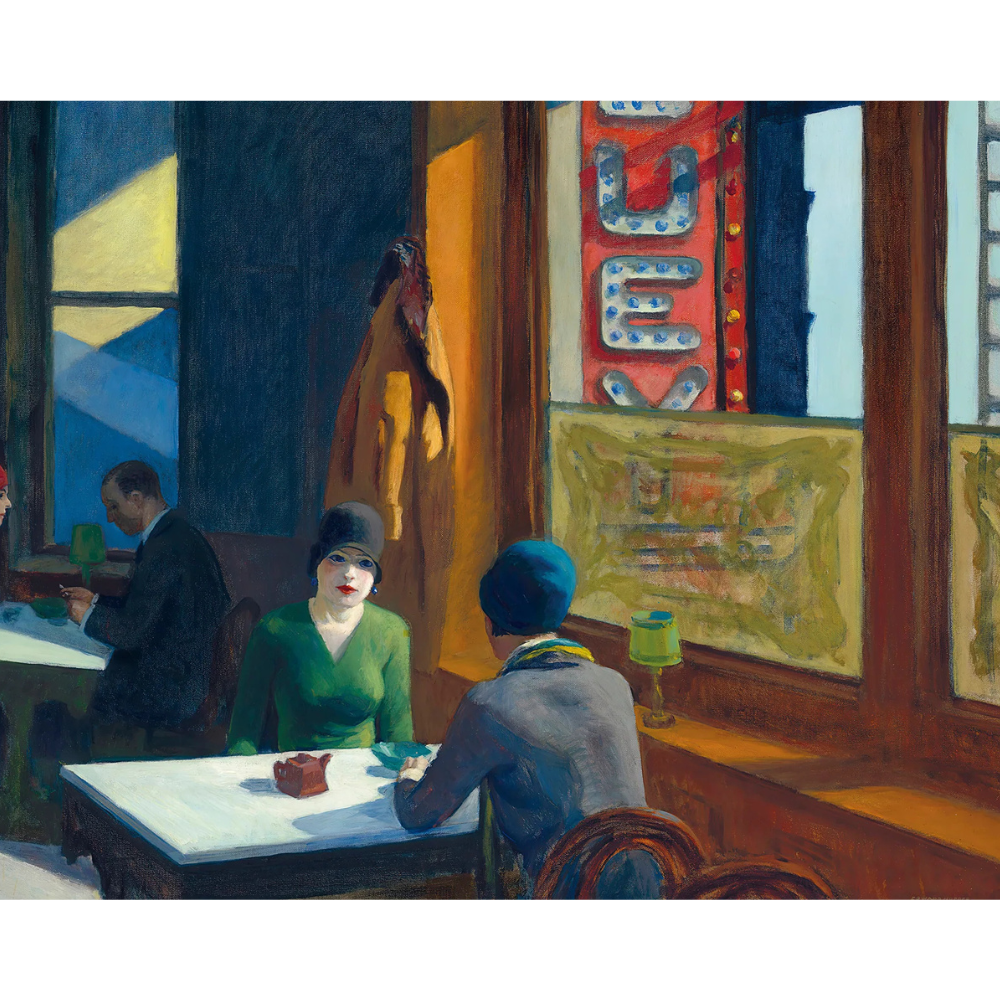 The outcome of Edward Hopper’s dual residencies in New England and New York City is a body of work rich in rural landscapes and seascapes, as well as enigmatic studies of city life, like his masterpiece Chop Suey. He is among the 20th century’s most influential painters (Abstract Expressionists Mark Rothko and Willem de Kooning were directly inspired by Hopper). His reach also extends into modern cinema, influencing such greats as Alfred Hitchcock with his scenes of moody solitude (Hopper’s House by the Railroad was the inspiration for the Bates mansion in Psycho). Hopper sold his first painting in his early 30s, yet his career went largely unrecognised for many years to follow. Even after some success in his lifetime, it is monumental that in 2018, Chop Suey became the most expensive work of pre–World War II American art to date when it sold for nearly $92 million.