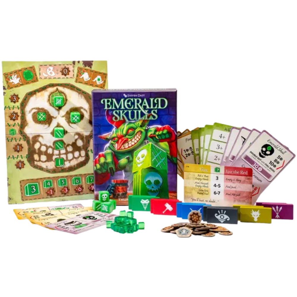Emerald Skulls is a push-your-luck, dice gambling game. Attempt to fill the skull board with dice and place speedy, real-time wagers on the outcomes of your opponents’ rolls.