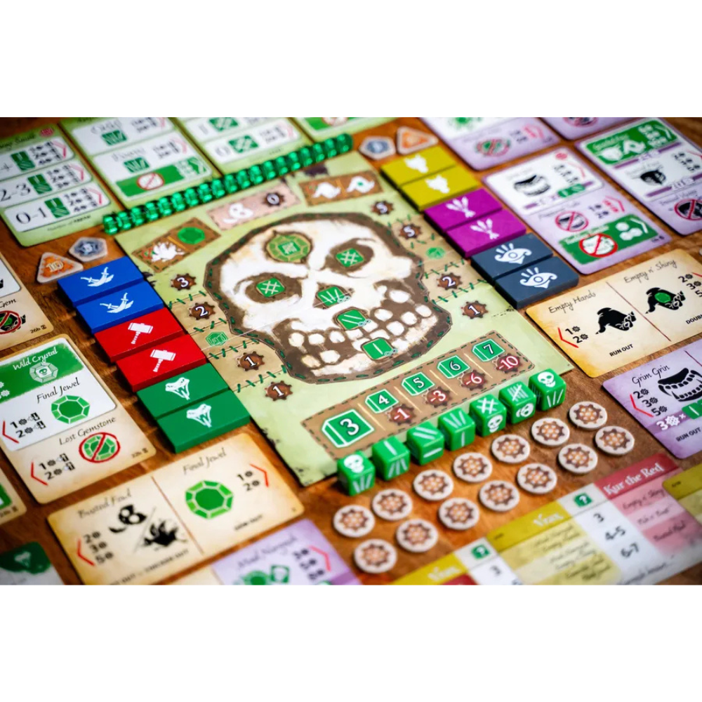 On your turn as the tumbler, roll dice and use tricks to place them on the five ascending tiers of the skull. But be warned - once you place dice, you can no longer put them on lower tiers for the rest of your turn!