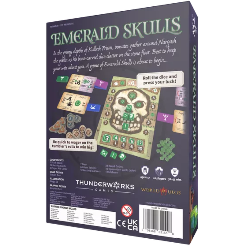 In the grimy depths of Kulbak Prison, where the greatest Dragul warriors are confined, inmates gather around Nargash the goblin and his bone-carved dice. Best to keep your wits about you. A game of Emerald Skulls is about to begin…