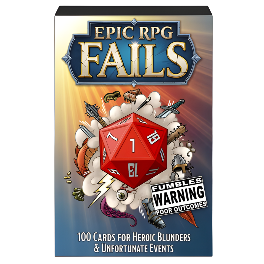 Epic RPG Fails turns critical mishaps into pure entertainment with a deck of one hundred prompts tailored for melee mistakes, magical misfires, ranged disasters, and every chaotic scenario in between. Instead of scrambling for ideas when you roll a 1, you can pull a card and instantly spark a hilarious narrative twist. Ideal for players and game masters alike, this deck ensures that even the worst failures become the most memorable stories at the table.