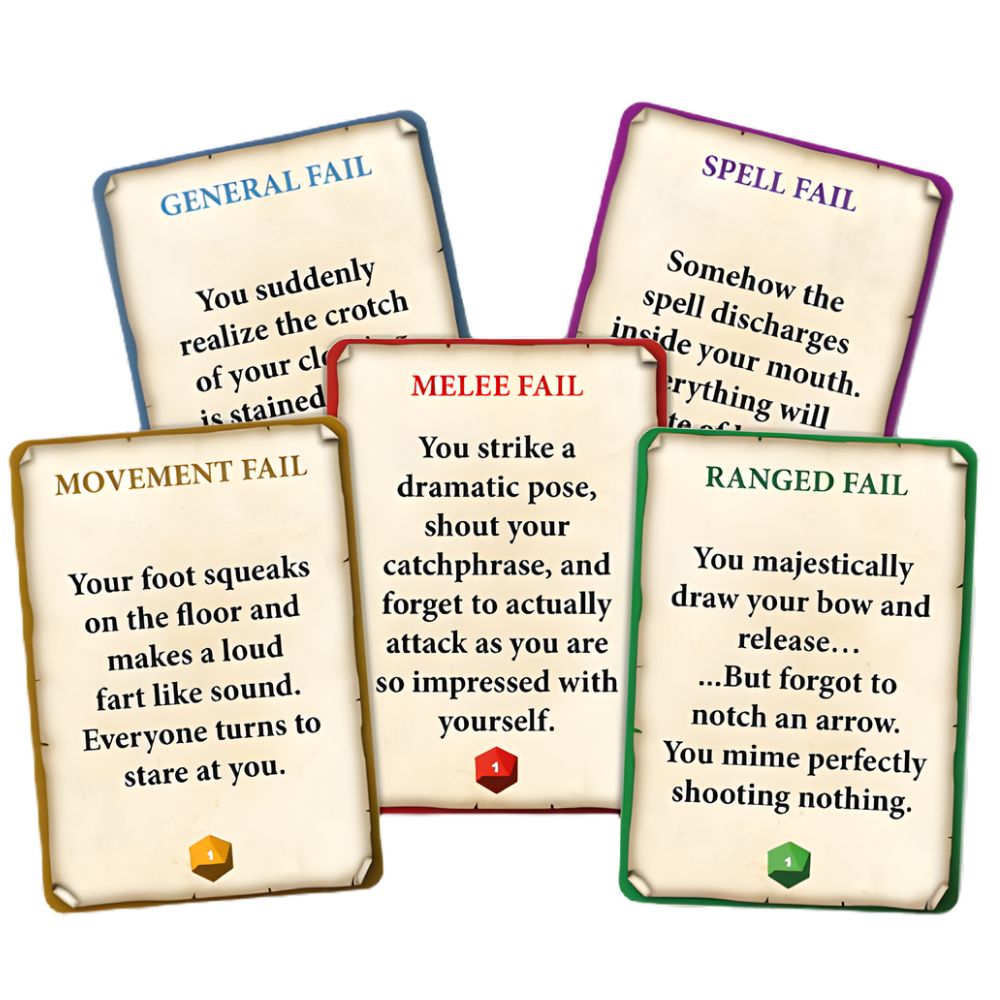 - COVERS EVERY TYPE OF MISHAP: Includes melee blunders, ranged slip ups, magical catastrophes, movement chaos, and fails for any occasion.