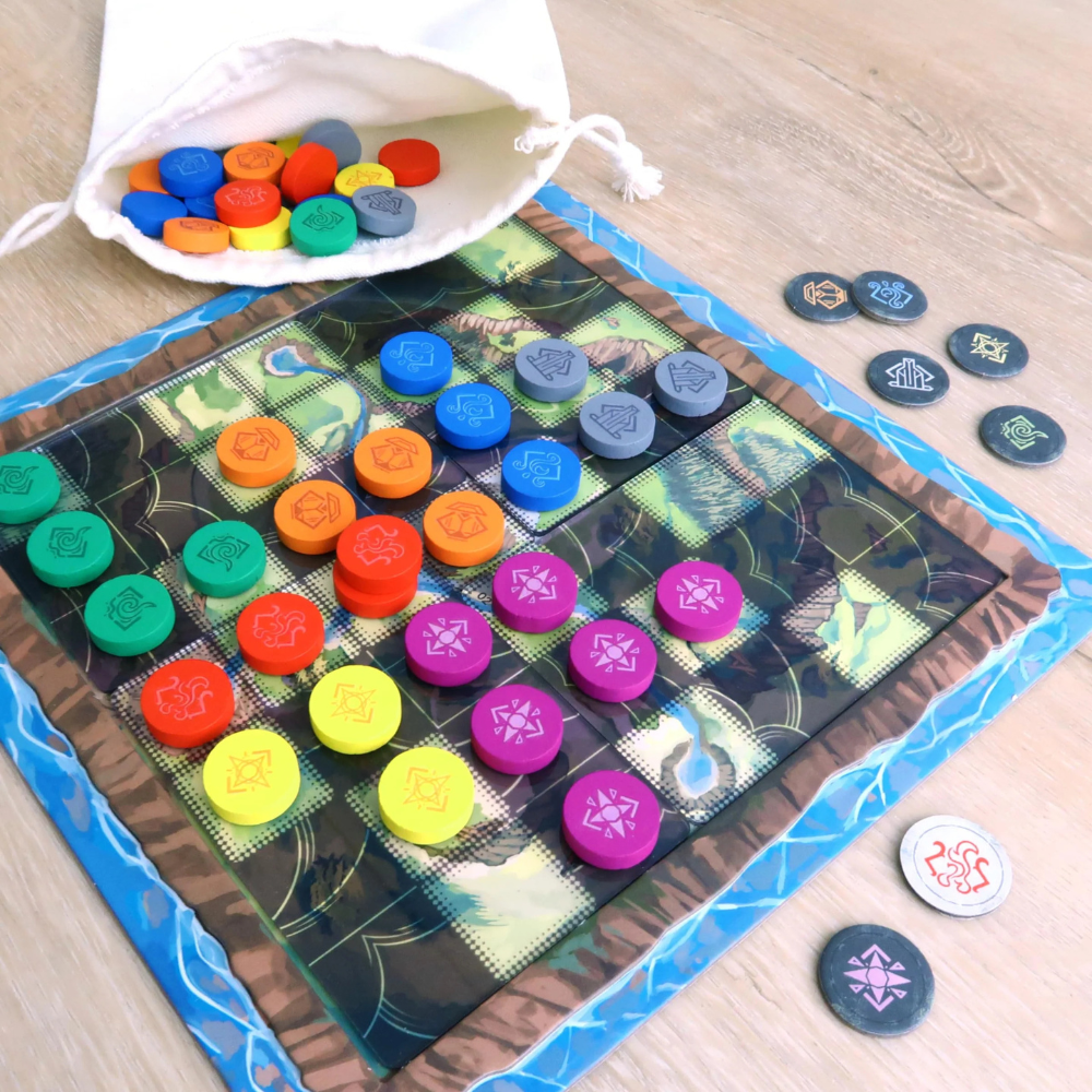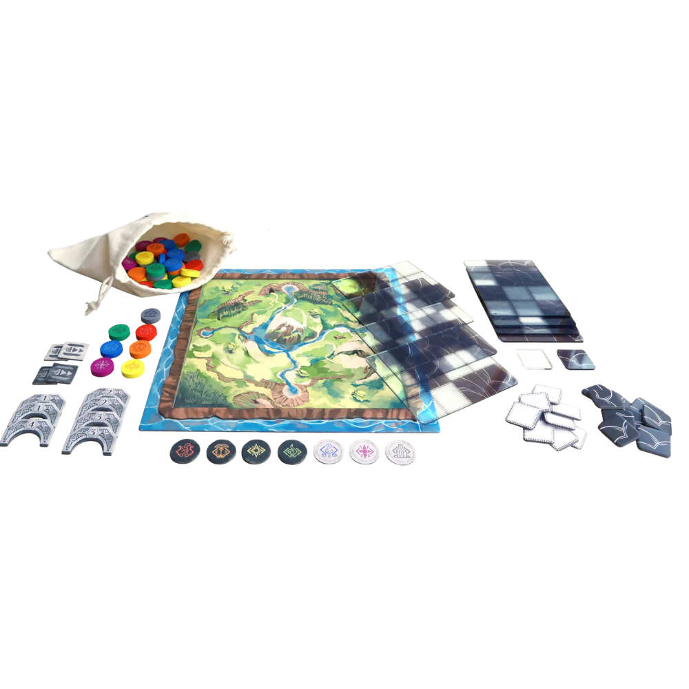 This is a lightweight 2 Player Abstract Game with beautiful components and 3 variants for advanced play. The black & white areas of the island are created with transparent plastic overlays to provide a different layout in every game.