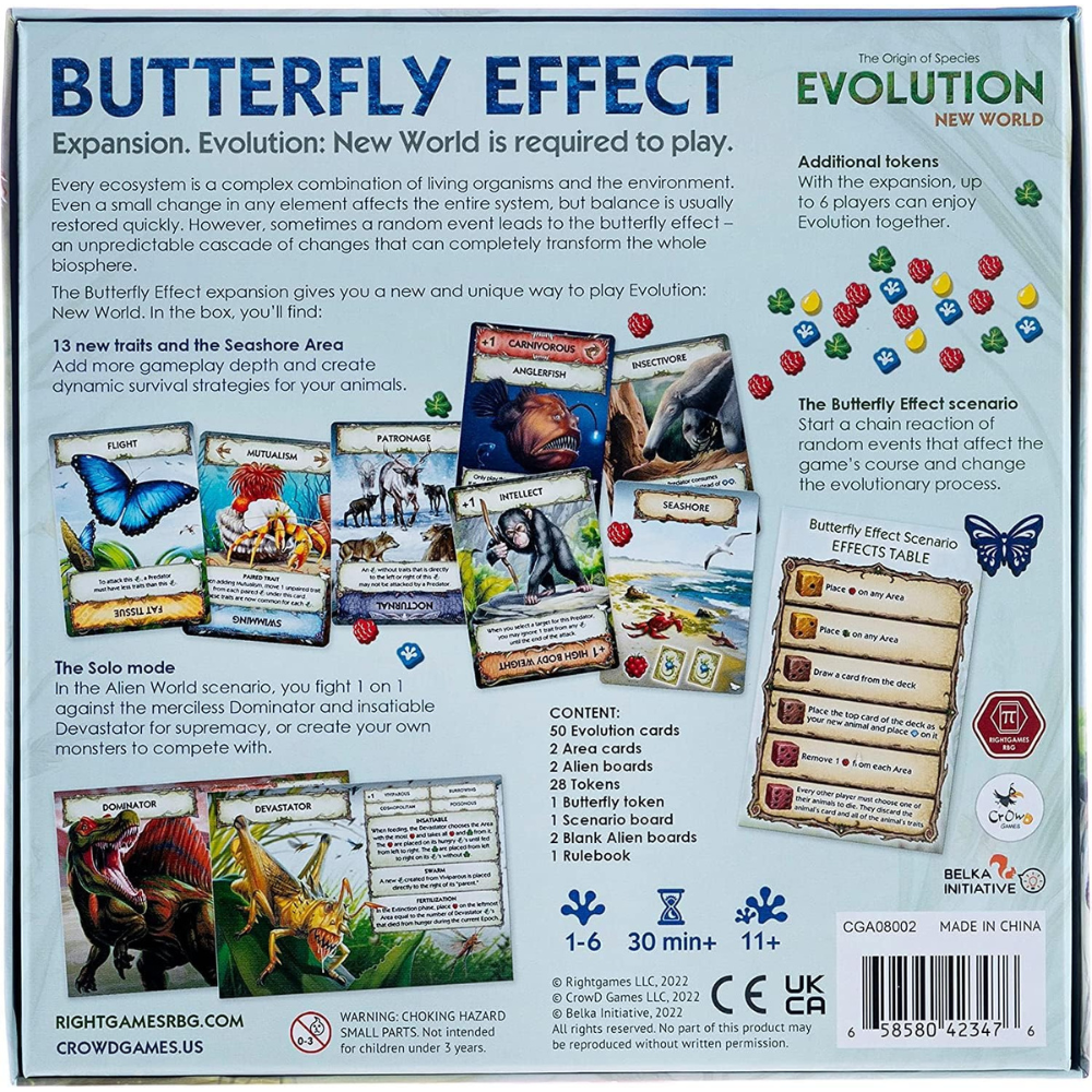 The Butterfly Effect expansion gives you a new and unique way to play Evolution: New World. In the box, you’ll find: