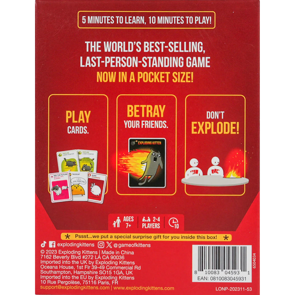 The world's best-selling, last-person-standing game now in a pocket size! Play cards, betray your friends, don't explode!