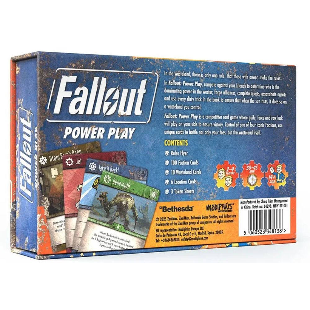 Welcome to Fallout: Power Play!, in which you control one of four factions from the Fallout universe: the Brotherhood, Raiders, the Enclave, and Super Mutant. You are all vying for control of locations within the Wasteland.