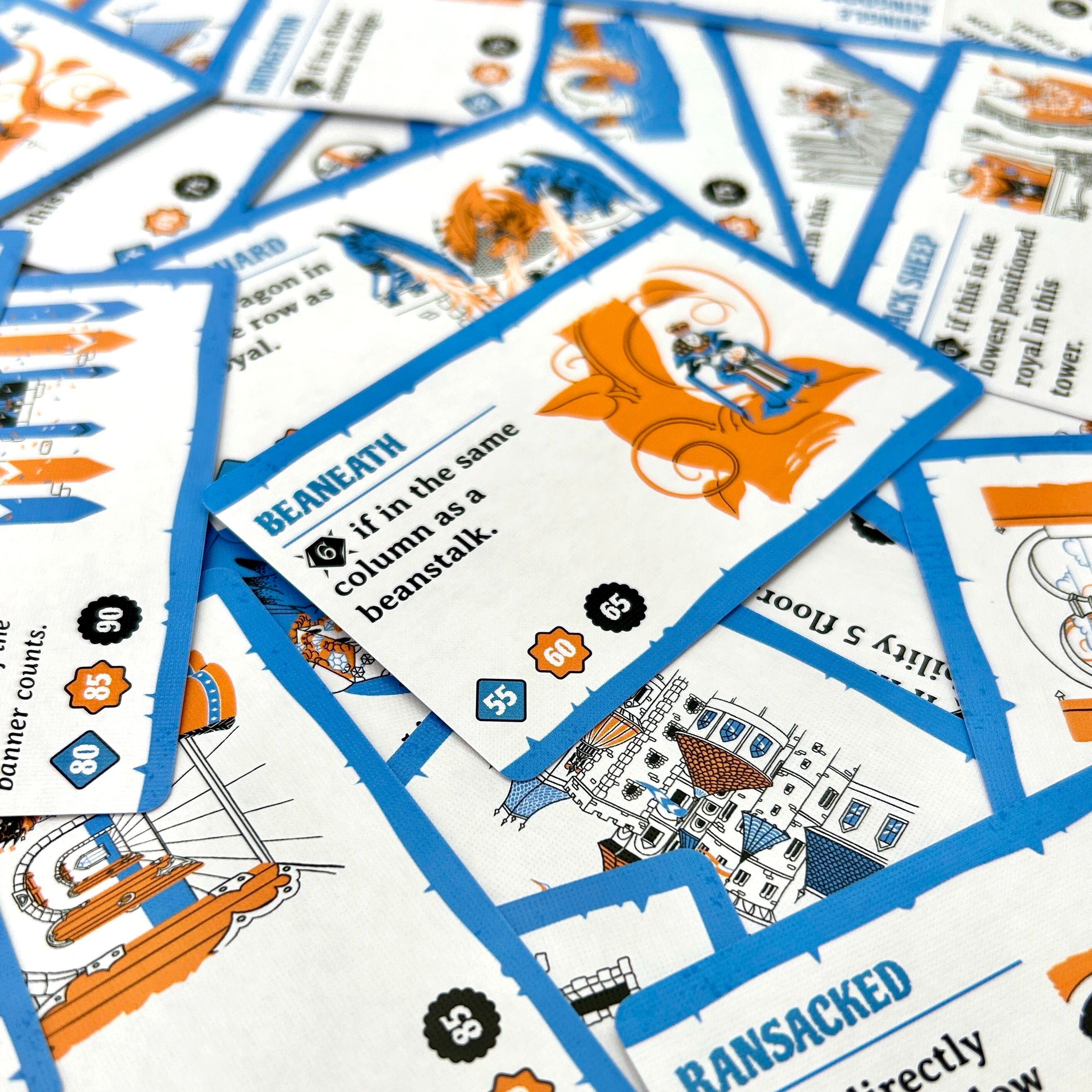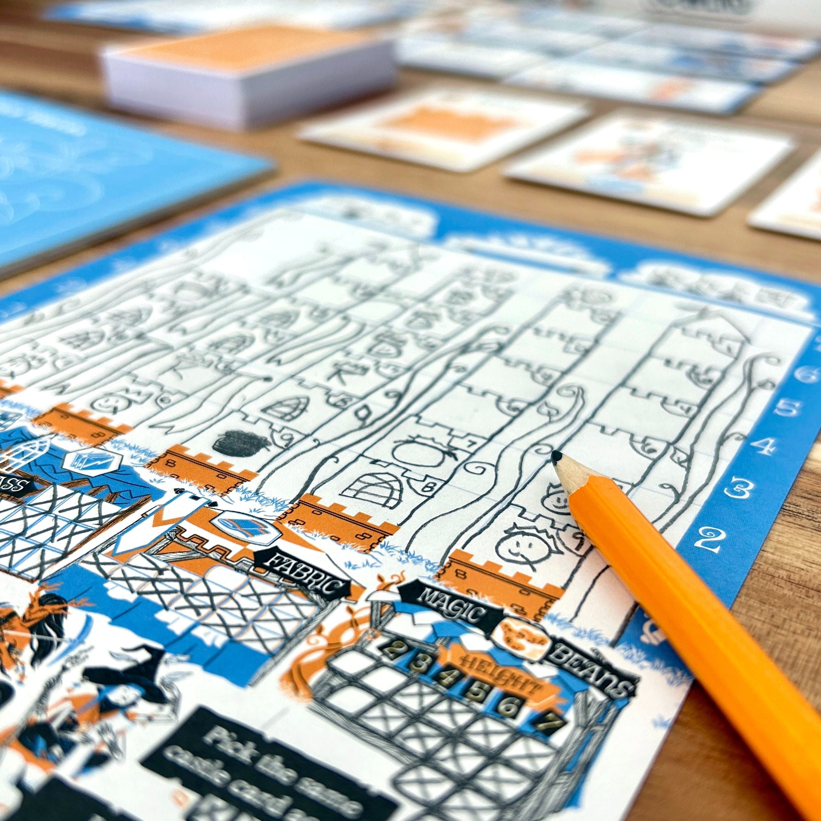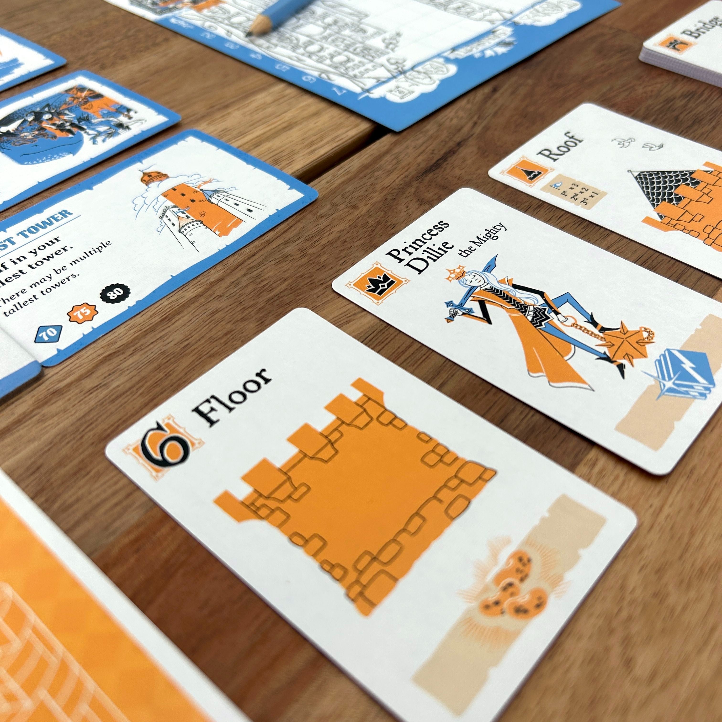 Flip Pick Towers is a drawing game where players illustrate charming, playful castles to meet demands set out by the fussy nobles who wish to move in. With a huge number of scoring objectives, victory lies in constructing soaring creations full of fantastic features and characters, all the while guarding against mischievous dragons seeking to halt your progress!