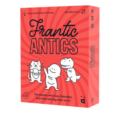 Frantics Antics is a frenetic mood game in which everybody guesses and mimes at the same time. Make some space, keep the fragile objects away and throw yourself into the game!