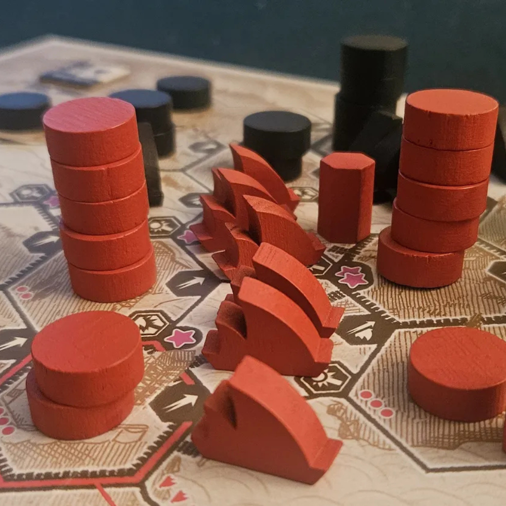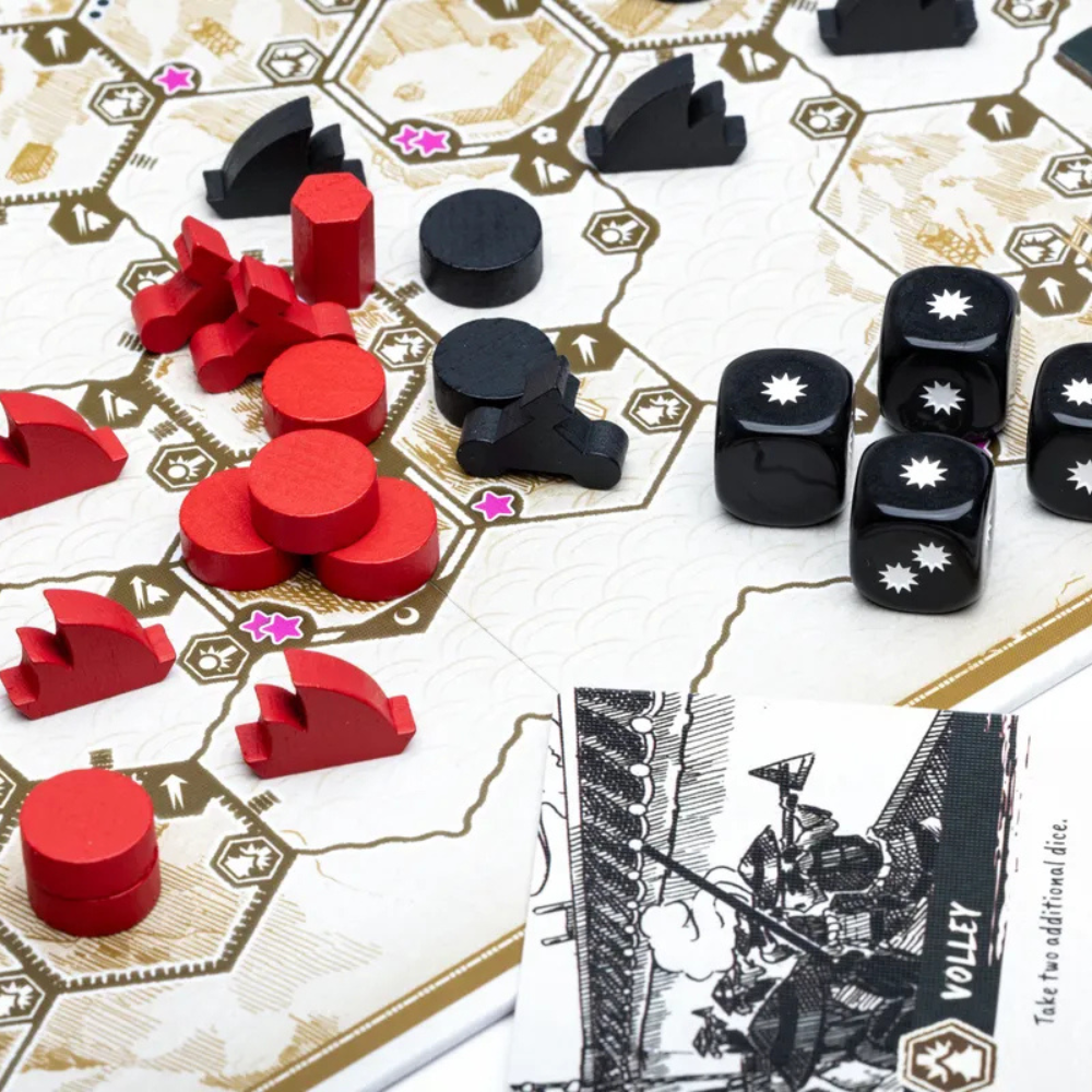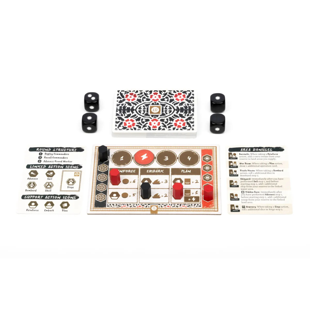 From award-winning design duo David Thompson and Trevor Benjamin, this compact two-player game combines the dynamism of a wargame with the cut-throat decision-making of worker-placement games.