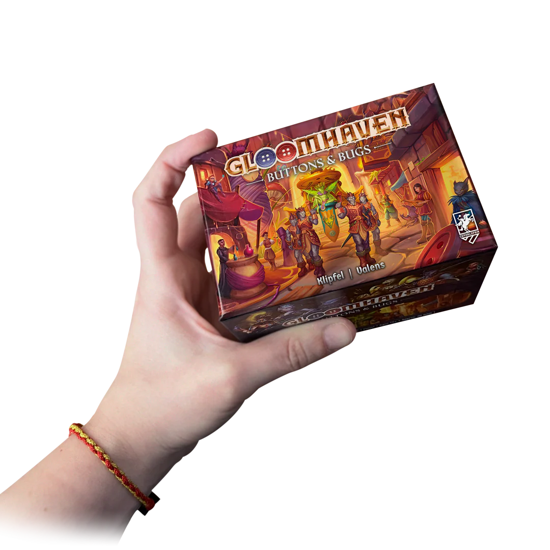 Buttons & Bugs gives you the same deep strategy combat of Gloomhaven but in a fraction of the size. It's compact footprint and streamline system means you can setup and play a scenario in under 20 minutes, and it fits on your coffee table or even an airplane tray table!