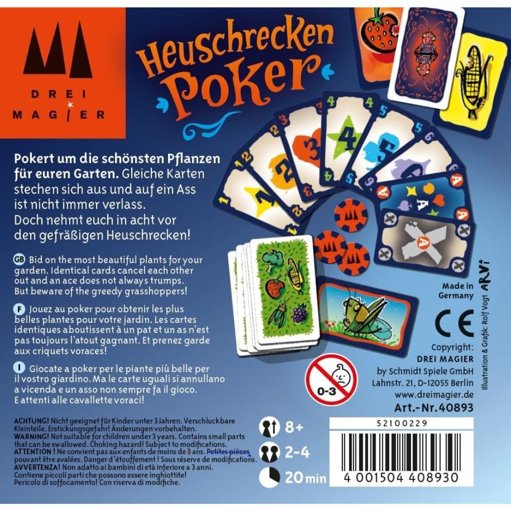 In Heuschrecken Poker (Grasshopper Poker), you want to cultivate the best garden you can without letting the grasshoppers wreck it.