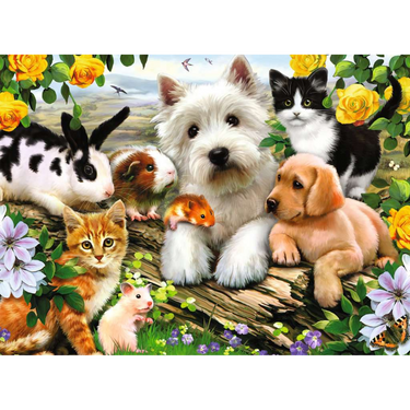 Adorable puppies, kittens, rabbits and more come together in this heartwarming animal scene. With 300 XXL pieces, this Ravensburger puzzle is ideal for young animal lovers aged 9 and up.