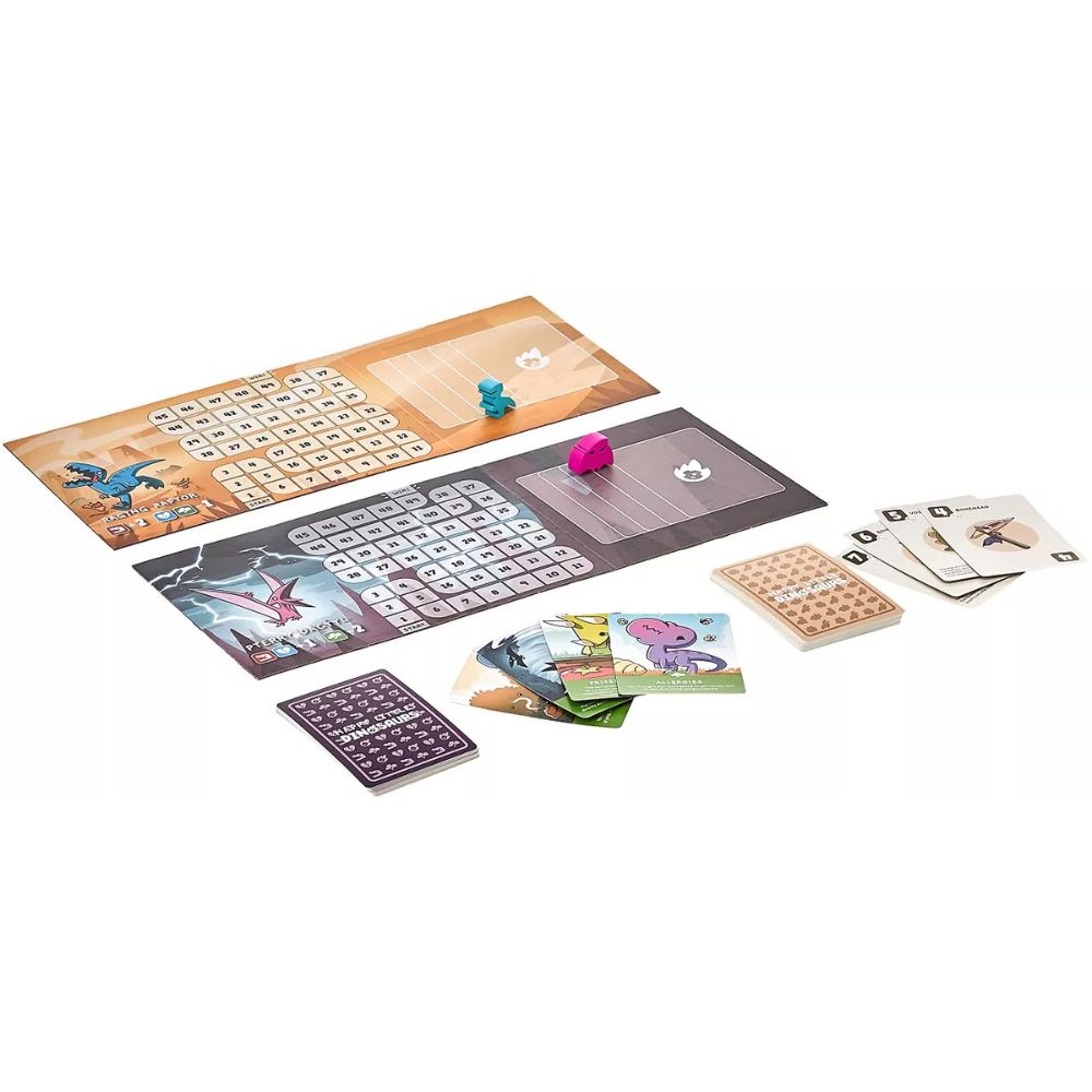 Includes 50 cards, 2 Dinosaur player boards, 2 Dinosaur meeples, and a rule book