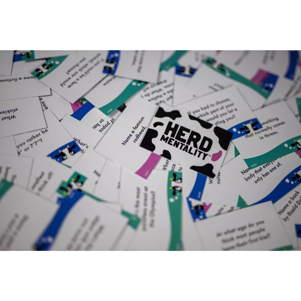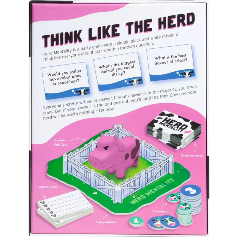 This is a party game for families, friends and cow rustlers. The aim of the game is simple: think like the herd and write down the same answers as your friends.