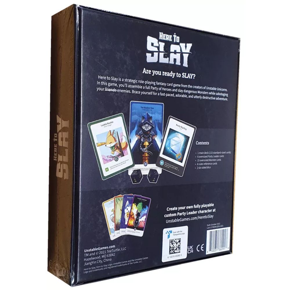 Here to Slay is a competitive role-playing fantasy strategy card game that's all about assembling a party of Heroes and slaying monsters (and sometimes sabotaging your friends too) from the creators of Unstable Unicorns.