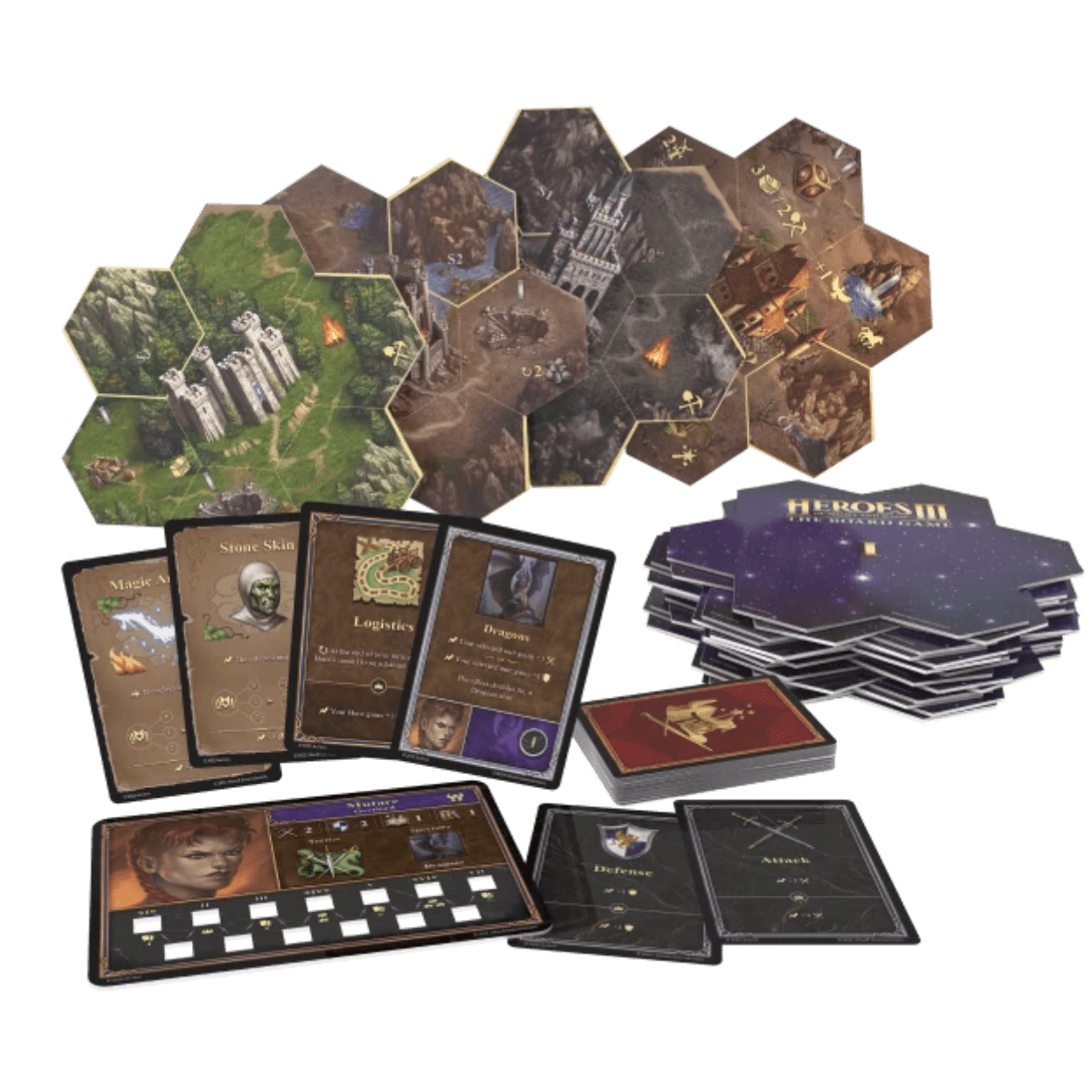 Heroes of Might & Magic III: The Board Game is an adventure-driven strategy game for 1-3 players set in the cult fantasy universe. The game includes competitive, cooperative, and solo scenarios to battle and explore your way through. The adventure maps will be represented by tiles, with each tile divided into seven hexagonal fields.