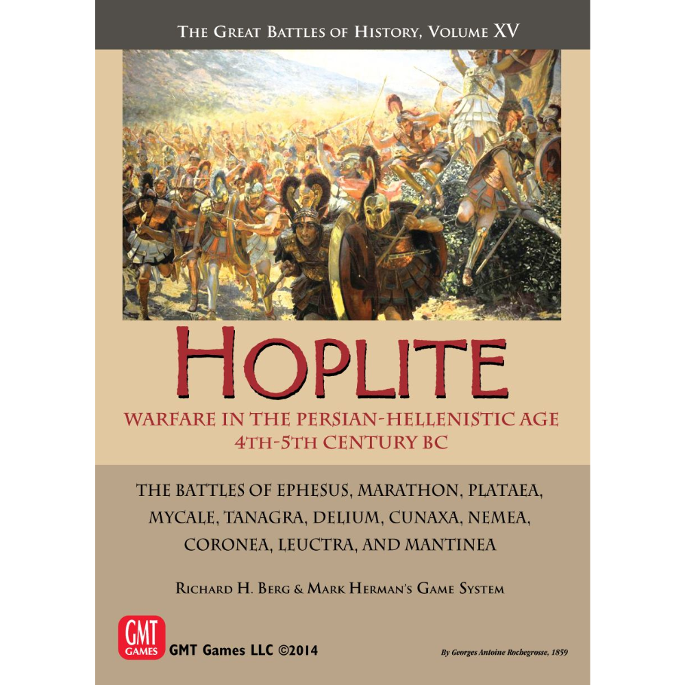 Hoplite, the 15th volume in the Great Battles of History series of games, allows players to recreate classic battles from the pre-Alexandrian Persian-Hellenistic Age, the heyday of the Hoplite (heavy infantry fighting in packed formation). This period is often considered to feature the birth of Western Warfare, as opposed to the Persian/Eastern style, which relied on archery , light cavalry, and mobility.