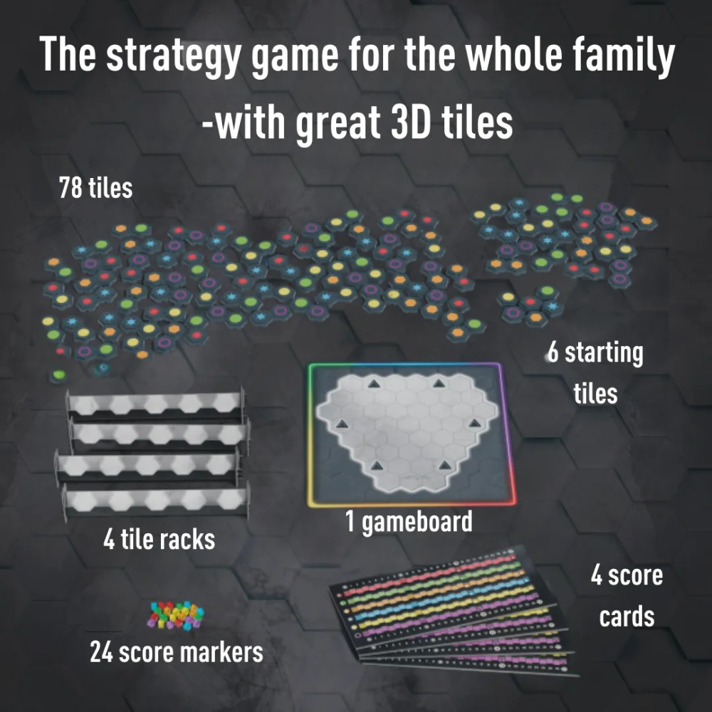 However, be careful to ensure no colour is neglected. The colour with the lowest score ultimately decides whether you win or not. Clever tile placement and a little bit of luck could ensure your victory!