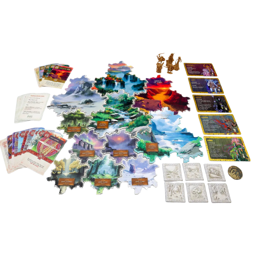 The expansion includes a variety of new territory tiles, tokens, Epic Tale and Advantage cards, as well as five detailed miniatures representing legendary heroes and deities: Nuada, Balor, Conan, Lugh, and Ériu.
