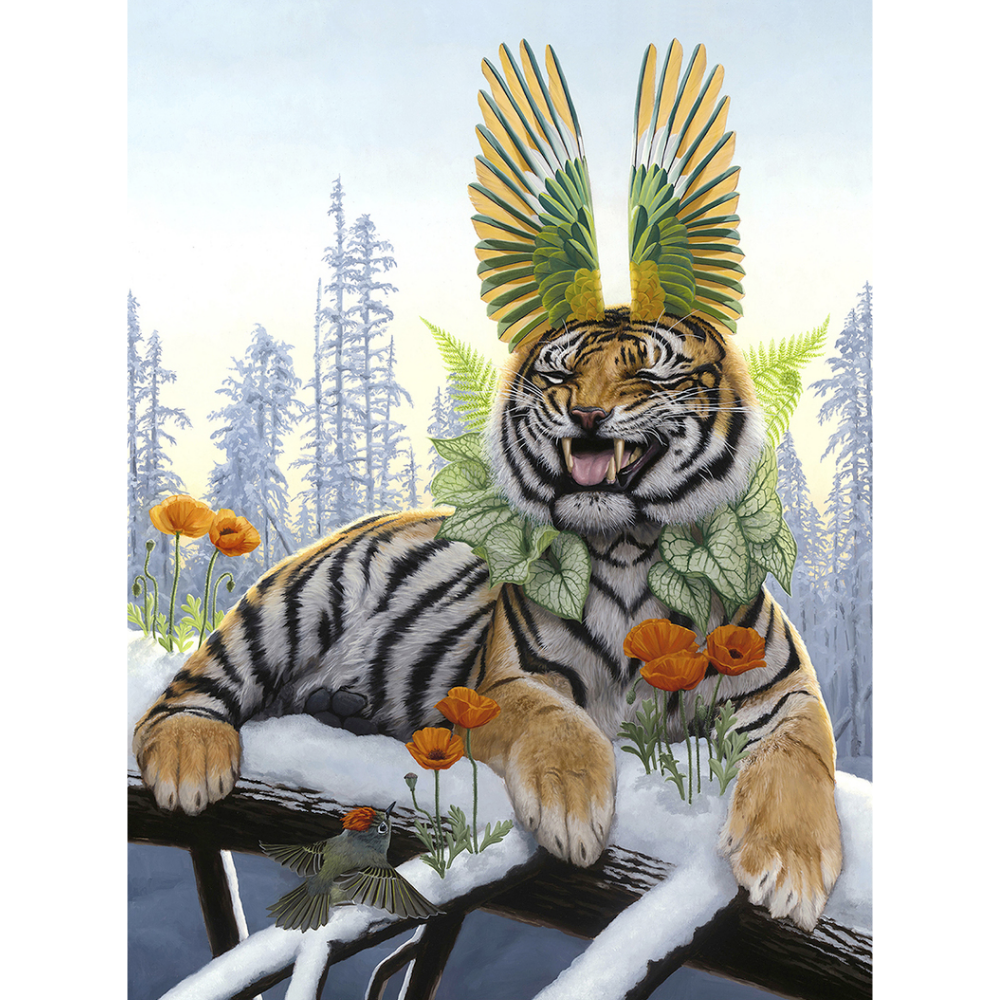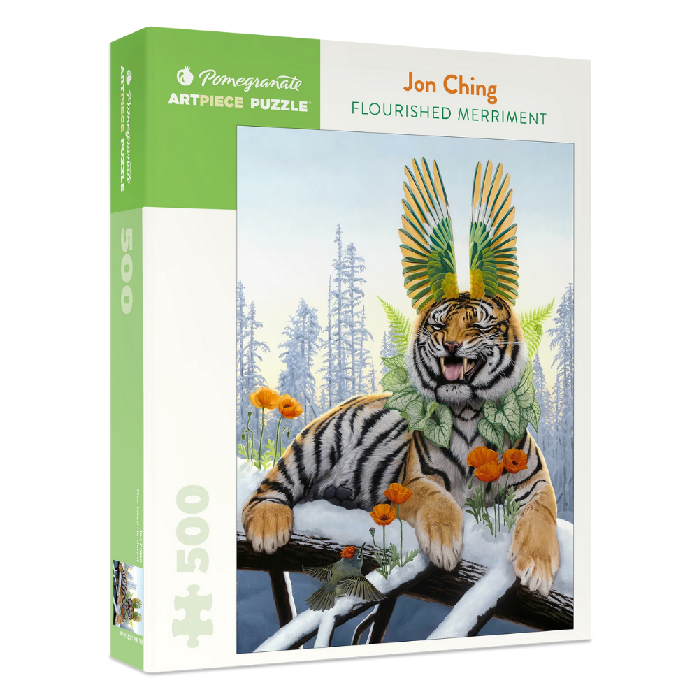 We are all in this together, and the interconnectedness of species and ecosystems is a particular passion for artist Jon Ching. His brilliant photorealistic paintings inspire close observation of flora and fauna—as well as flights of the imagination. Revel in the surreal beauty and connection of every fern, flower, and tiger stripe as you assemble this 500-piece puzzle
