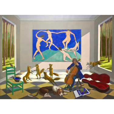 The painted story lies at the heart of Kathyn Freeman’s artworks. Symbolism and magical realism enliven her classical compositions, and her narratives nod to a universal human connection. As part of Freeman’s Animal Dreams series, Dance expresses the lyrical beauty and magic of Matisse’s eponymous cameo while prompting reflection on how habitat encroachment is affecting wildlife. The fox family has leapt in from the wild yet moves to the music in Freeman’s dreamlike sanctuary. And the cellist plays on.