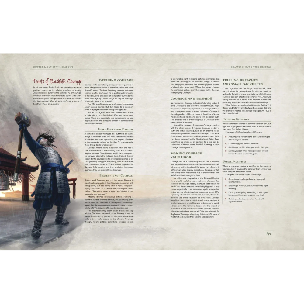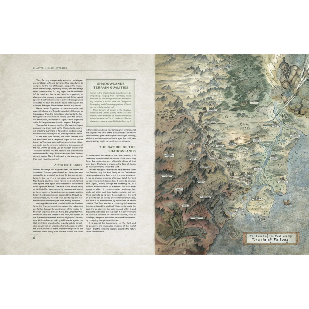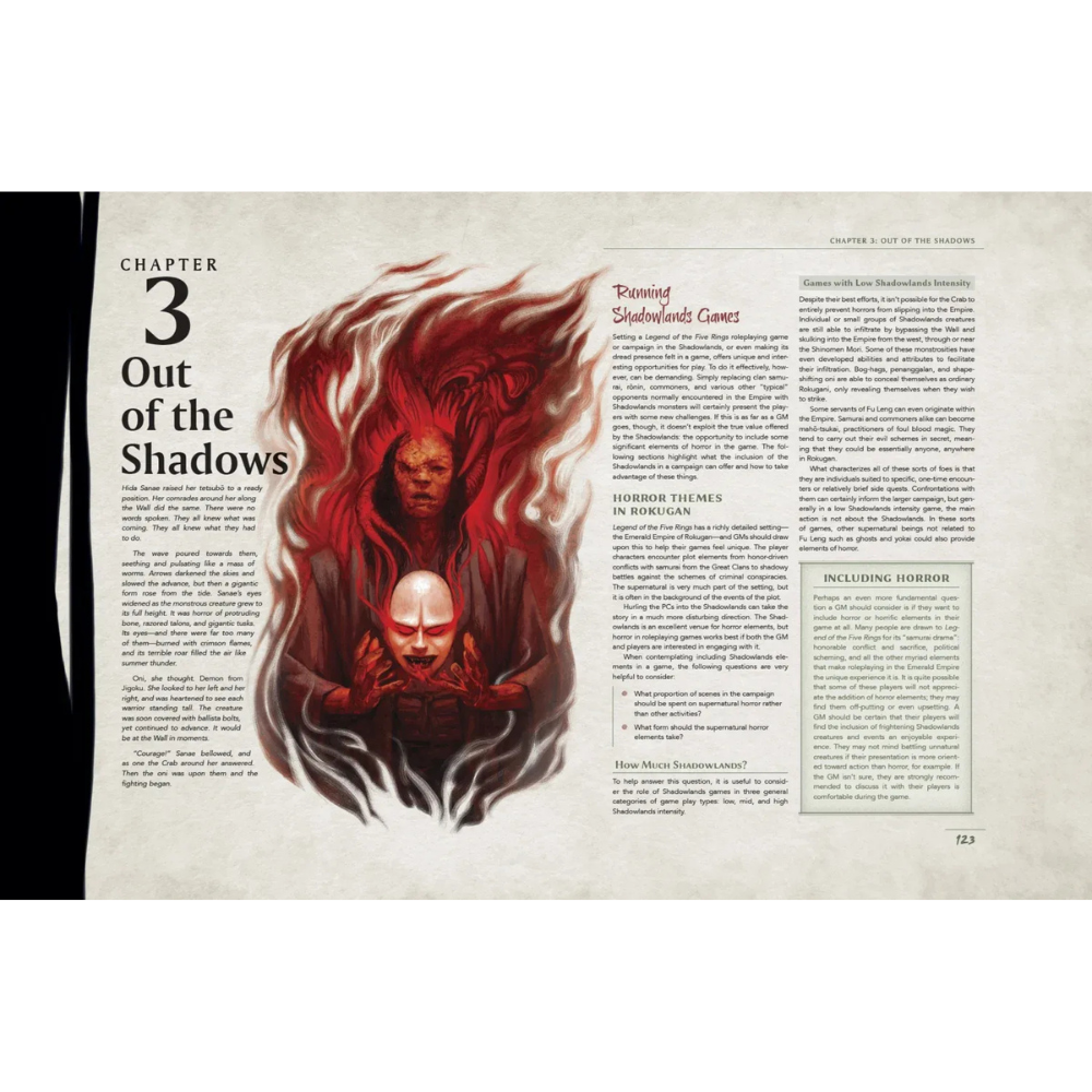 Shadowlands explores these dark realms and the tainted creatures that fester within, as well as the samurai who do battle against them at the Wall or beyond.