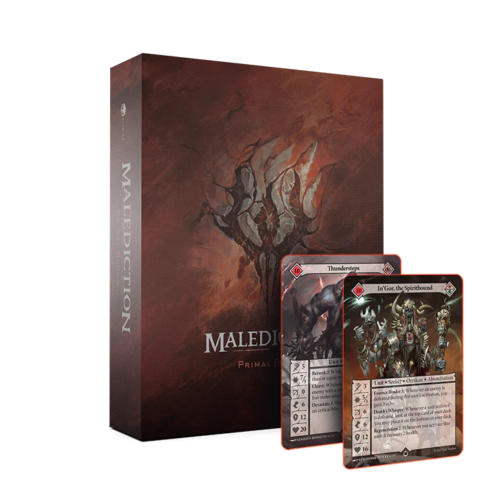 You play as a Seeker, a champion of your faction, leading a warband into the accursed grounds of the Malediction and battling enemies to claim relics from the husks of their former wielders. The game can be played head-to-head or in teams. Players bring their choice of terrain set to create a battlefield and face one another using their custom decks, with each Seeker offering distinct play styles and creative ways to combine cards from their associated factions.