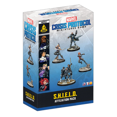 The S.H.I.E.L.D. Affiliation Pack contains miniatures, Stat Cards, and Team Tactic Cards for the collected characters. Ready to take to the table in Marvel: Crisis Protocol.