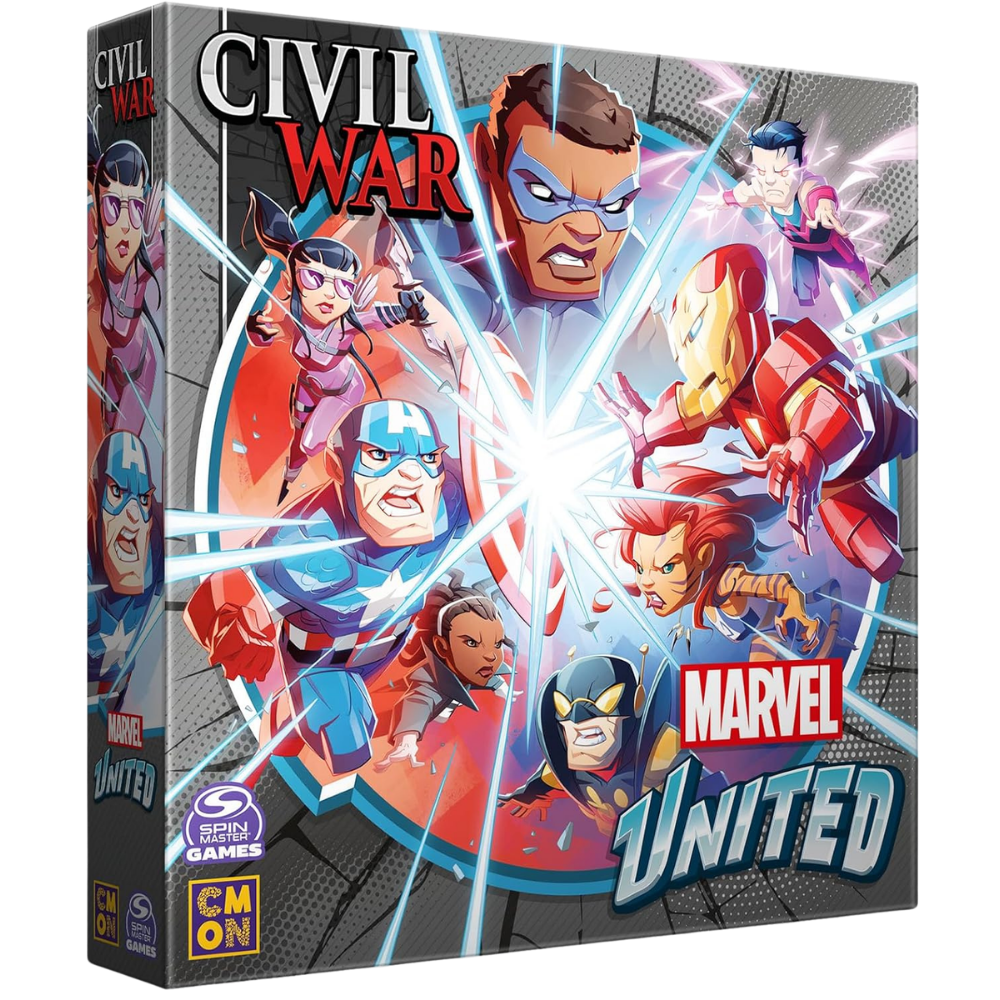 This expansion brings an entirely new way of playing Marvel United! The Civil War play modes make it a true Player vs Player game, in which two teams of Heroes clash against each other, with no Villain in sight. Featuring a roster of Heroes from both sides of the Registration conflict, this expansion brings two ways for players to fight each other: either the more casual Clash of Heroes, or the more competitive, asymmetrical, and thematic Registration Clash! Which team will you choose?