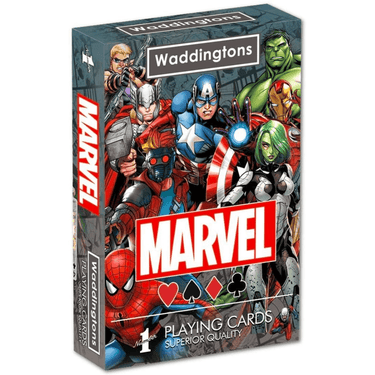 Unite with your favourite Marvel characters including the valiant Captain America, the formidable Thor and the invincible Iron Man, alongside 52 of your much-loved Marvel heroes and much-loathed villains. Will Spider-Man help you win Snap? Or The Guardians of the Galaxy help you defeat your Go-Fish nemesis? Play all your favourite card games with the Marvel Waddingtons No 1 Playing Cards deck.