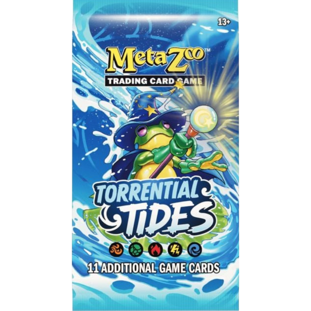 The 2 Pack Booster Collection contains two sealed booster packs. 1 Base Set Booster Pack and 1 Torrential Tides pack are included in this collection. Each pack contains 11 additional game cards, including an Aura or Token card, and may feature any of the four official pack arts.