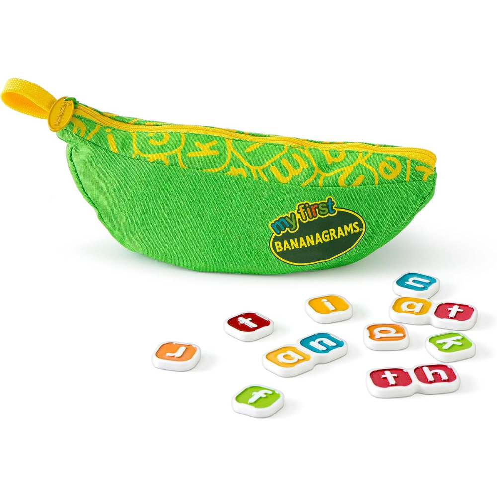 By contrast, My First Bananagrams has 80 lower-case letters and 13 dual-letter combo tiles that players use in multiple activities and minigames.