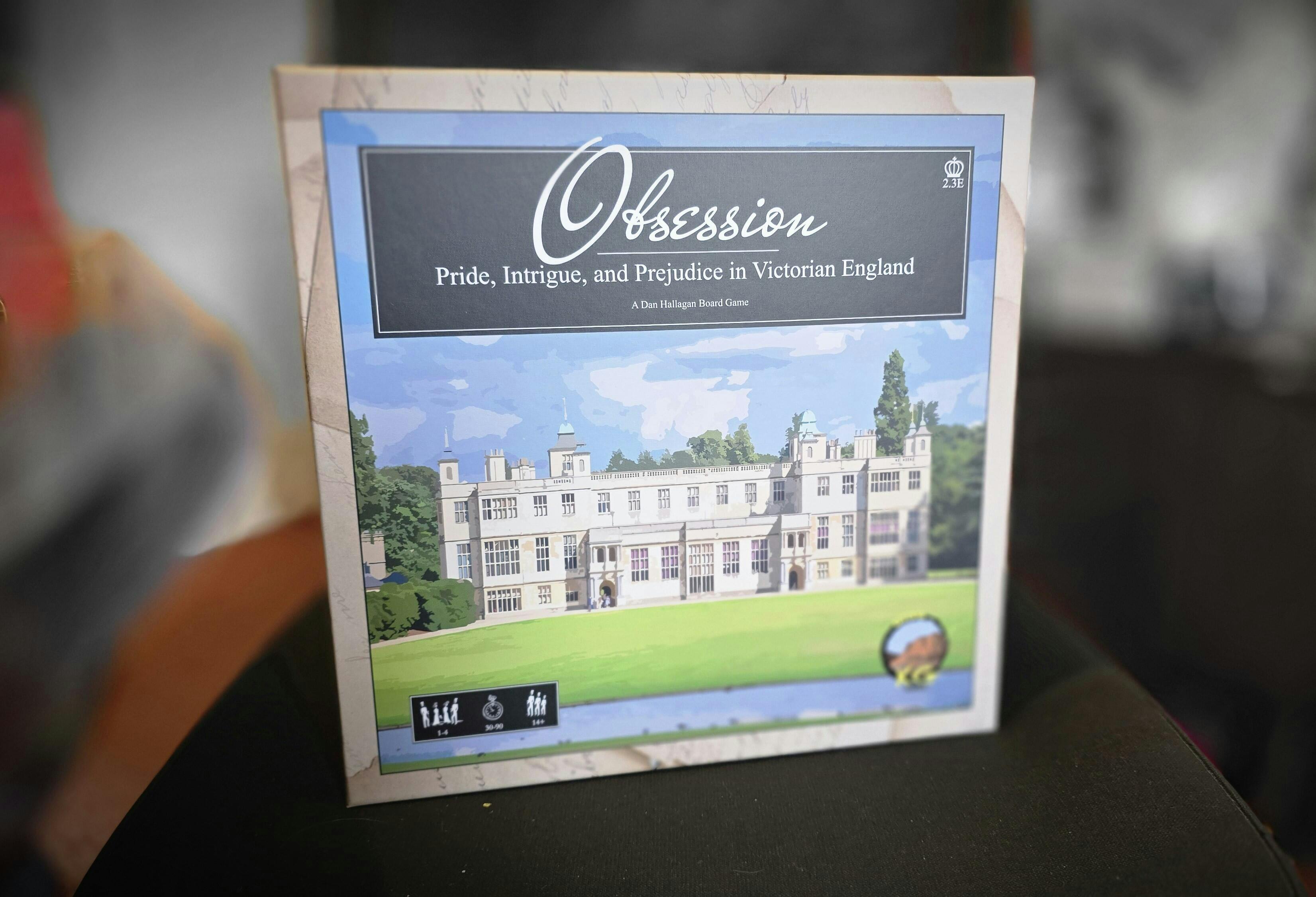 Obsession is a game of 16 to 20 turns in which players build a deck of Victorian gentry (British social upper class), renovate their estate by acquiring building tiles from a centralized builders' market, and manipulate an extensive service staff of butlers, housekeepers, underbutlers, maids, valets, and footmen utilizing a novel worker placement mechanic. Successfully hosting prestigious social activities such as Fox Hunts, Music Recitals, Billiards, Political Debates, and Grand Balls increases a player's wealth, reputation, and connections among the elite.
