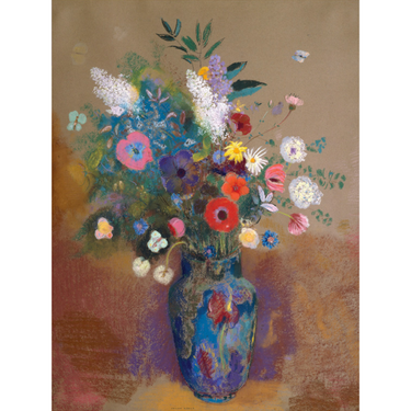 Odilon Redon's exuberant flowers are the evolution of a career that began with monochromatic works and ended with his glowing flower paintings. In making works such as this, he referenced the extensive garden he and his wife maintained, but depicted bouquets of fantasy. Using pastels, he duplicated both the softness of a flower’s petals and the iridescence of a painted vase in Bouquet of Flowers.