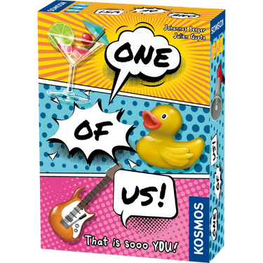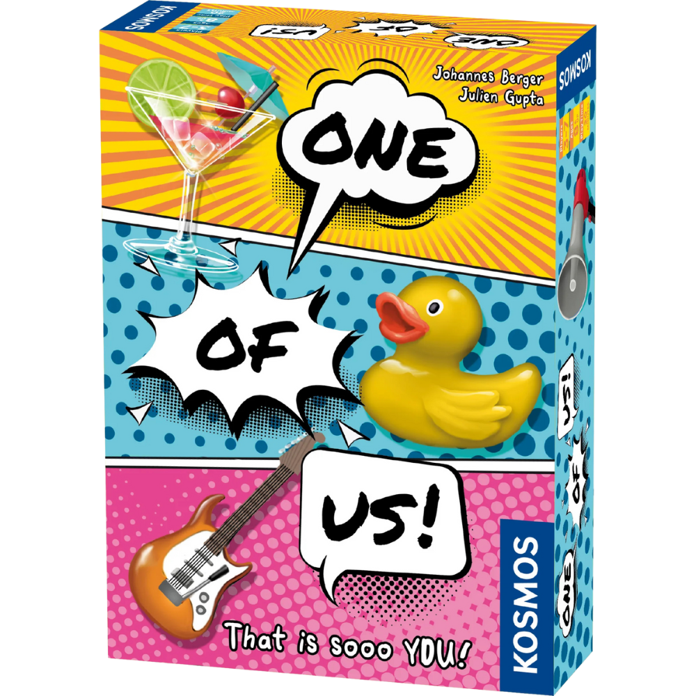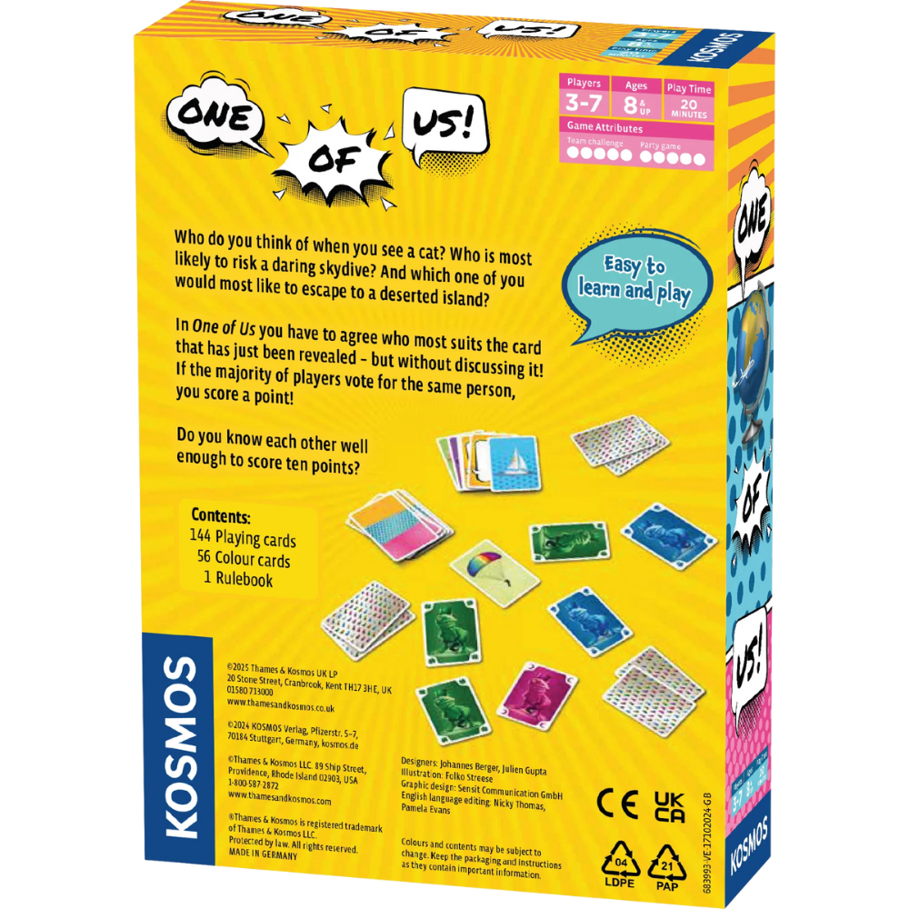 In One of Us, you have to agree on which player you most associate with the card you’ve just turned over — and without discussing it!