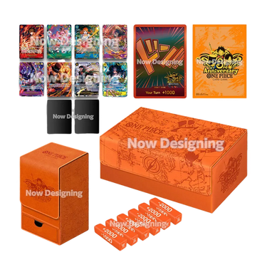 The definitive commemorative set for all One Piece enthusiasts, this anniversary includes rare promotional cards with special designs inspired by the legendary trio of brothers. With premium leather accessories to protect and organize your collection, every element of the set reflects the quality and attention to detail that characterizes official Bandai products. The exclusive DON!! cards and acrylic counters offer an enhanced gaming experience, while the case and storage box ensure perfect conservation for years.