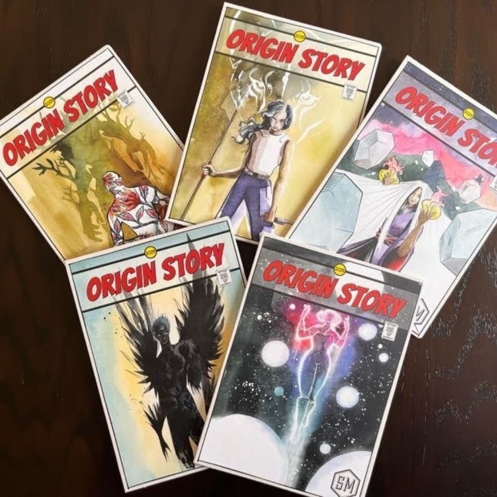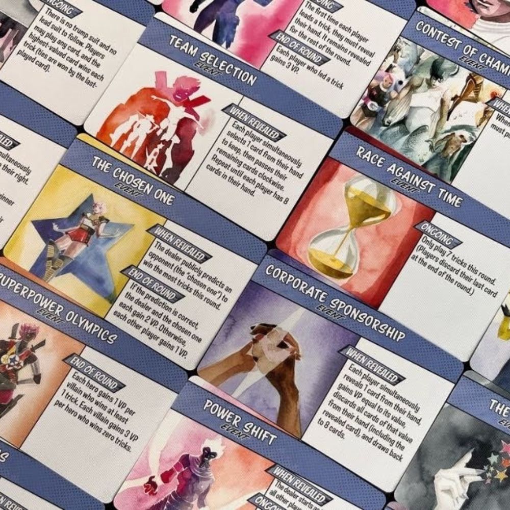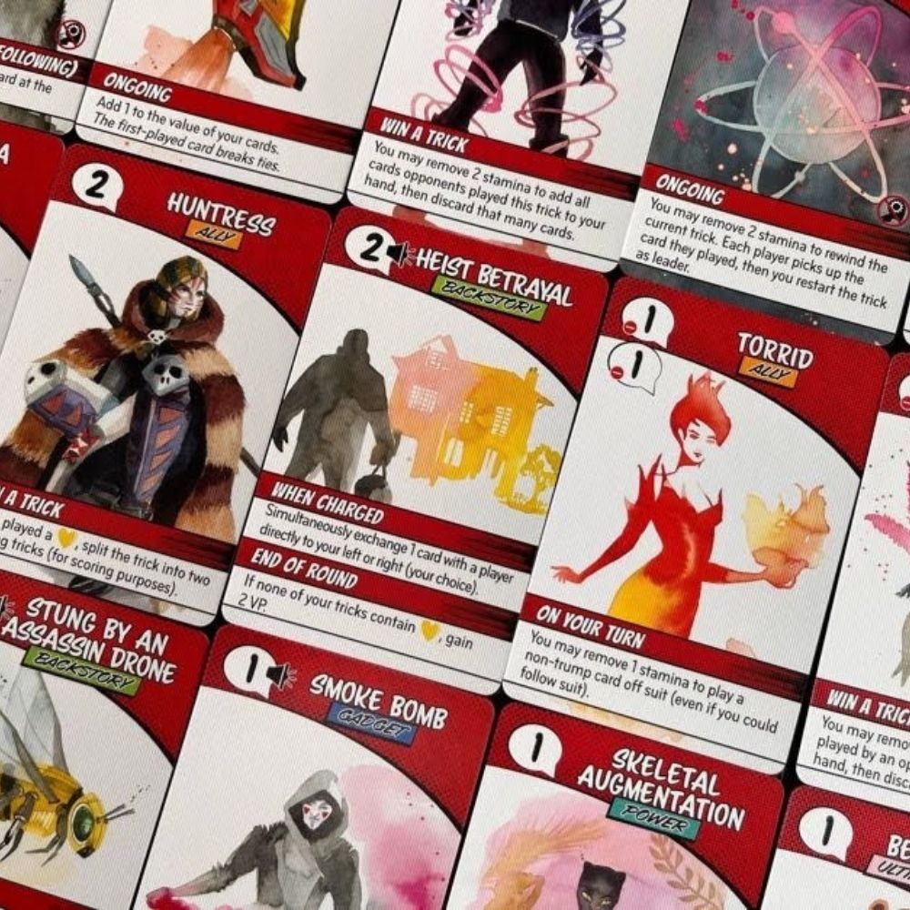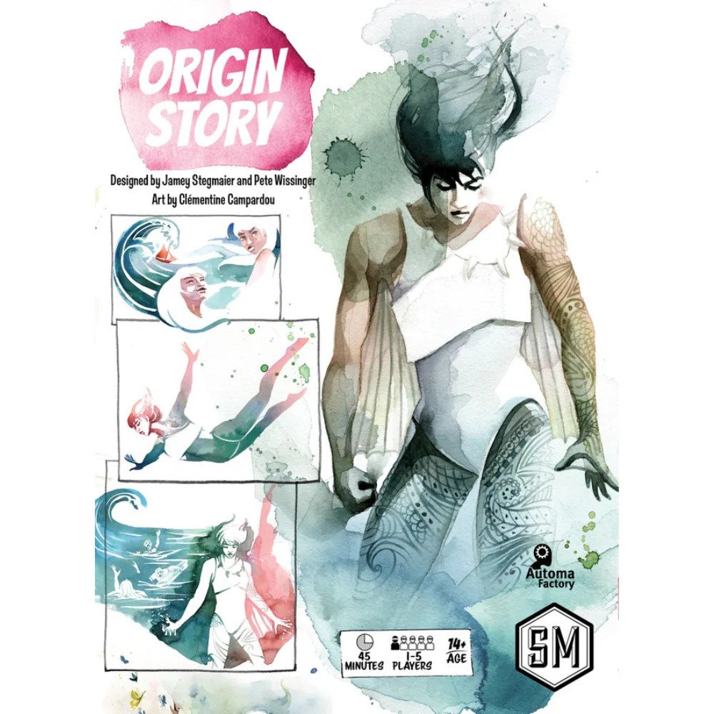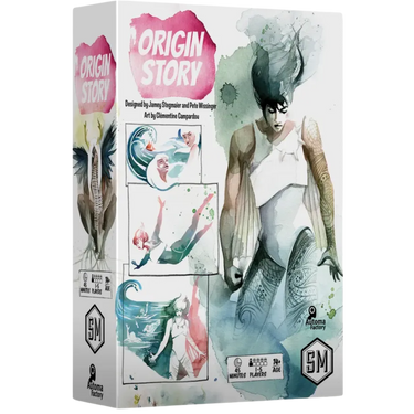 Origin Story is a 1-5 player competitive tableau-building, trick-taking game played over 5 rounds. Each round represents a chapter in your development and grants a new card to add to your player mat. Charge your cards and use their abilities to score more points than your opponents.