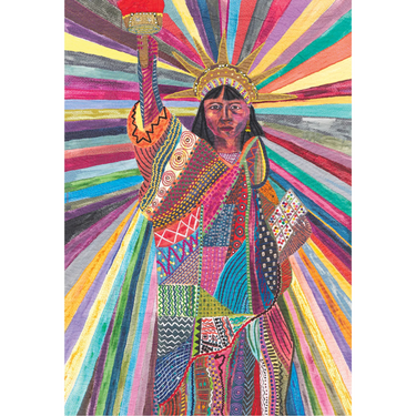 Draped in a cultural fusion of colours, patterns, and textures, Pacita Abad’s L.A. Liberty shines a kaleidoscopic light on the melting pot that is America. Abad was born in the Philippines but escaped its political turmoil by emigrating to San Francisco. Her evolution as an artist and citizen of the world would involve living on six continents and visiting more than 60 countries, where she was influenced by mixed-media textile arts, indigenous artforms, and the intricacies of marginalised communities. A woman of colour, her fierce creative gaze was focused by her investment in sociopolitical justice and a love for humanity.