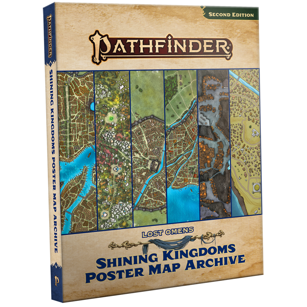 Presented in a durable box for easy storage and retrieval, the Shining Kingdoms Poster Map Archive charts the path to endless adventures in the Shining Kingdoms or in any fantasy RPG campaign!