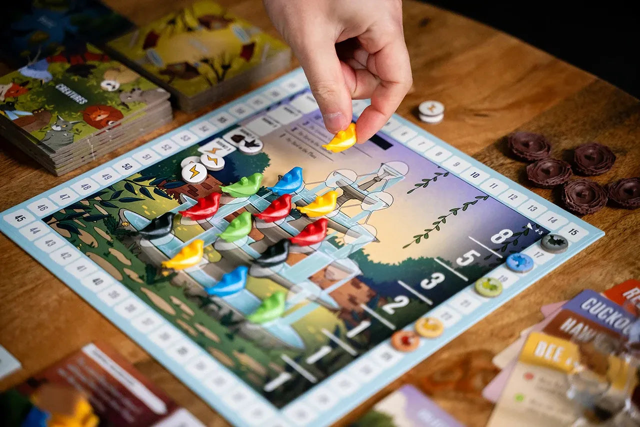 In Perch, players fight for control of locations by commanding birds of their own and other players' flocks. Earn points and command woodland creatures by having the most birds on a location, pushing your foes off the perch, and breaking ties to take the lead.
