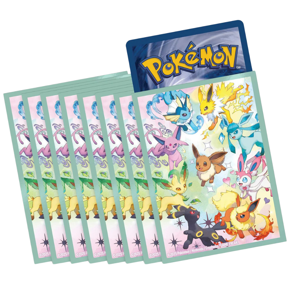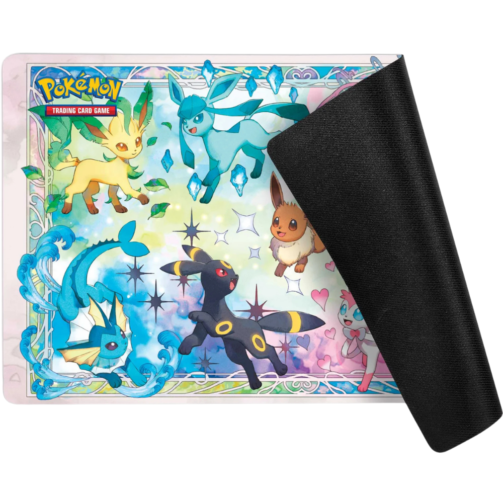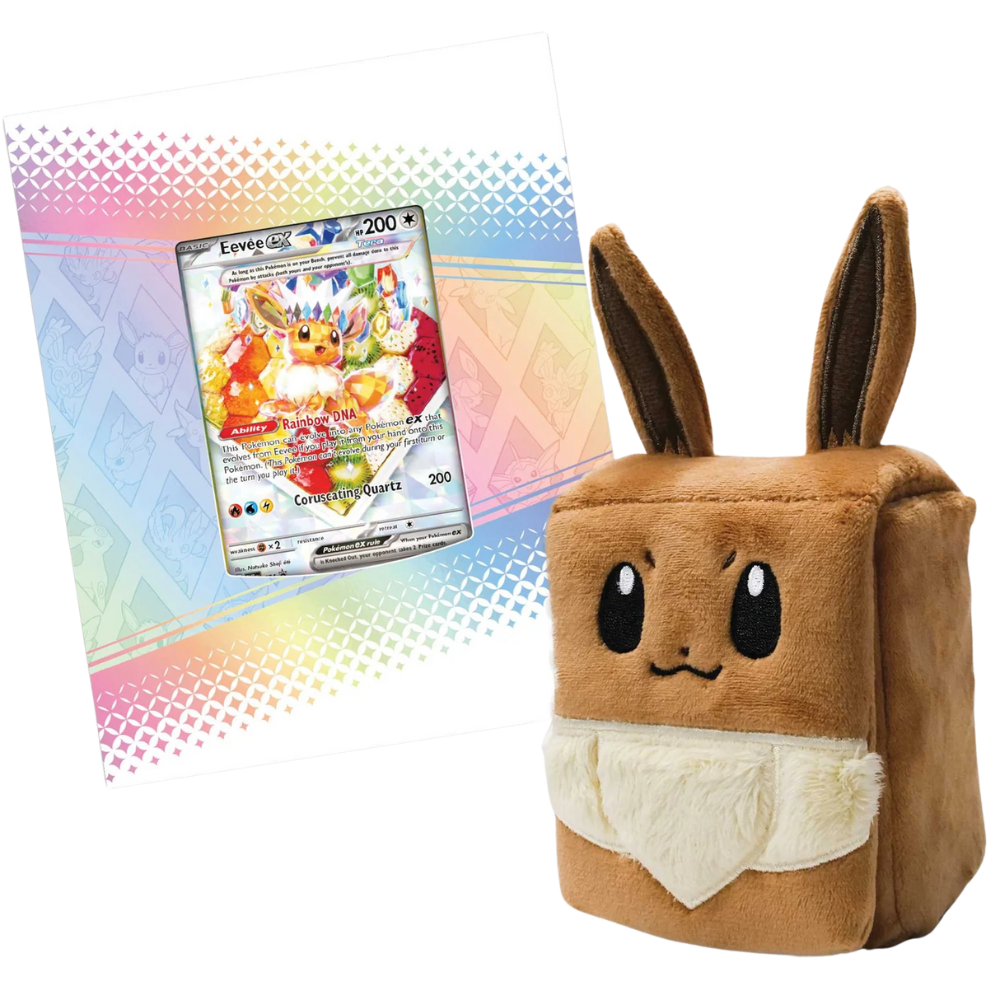Eevee and its Evolutions spread friendship and joy everywhere they go, and with the adorable accessories in this collection, they’re sure to bring that same happiness to your next big game! Inside, you’ll find a special illustration rare-style promo card featuring Eevee as a Stellar Tera Pokémon ex, ready to evolve thanks to its Rainbow DNA. You also get a fuzzy Eevee deck box, a playmat and full set of card sleeves featuring amazing artwork of Eevee and its Evolutions, and more than a dozen booster packs from the special Scarlet & Violet—Prismatic Evolutions expansion.