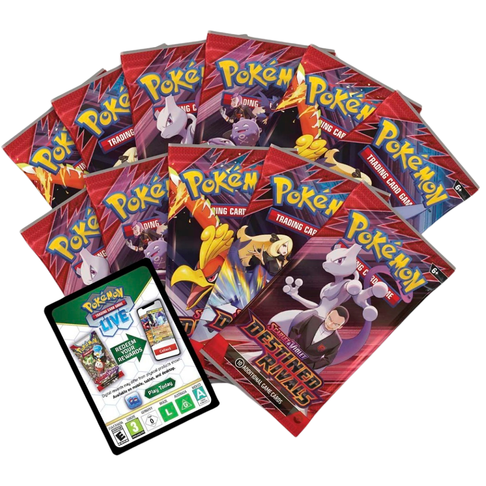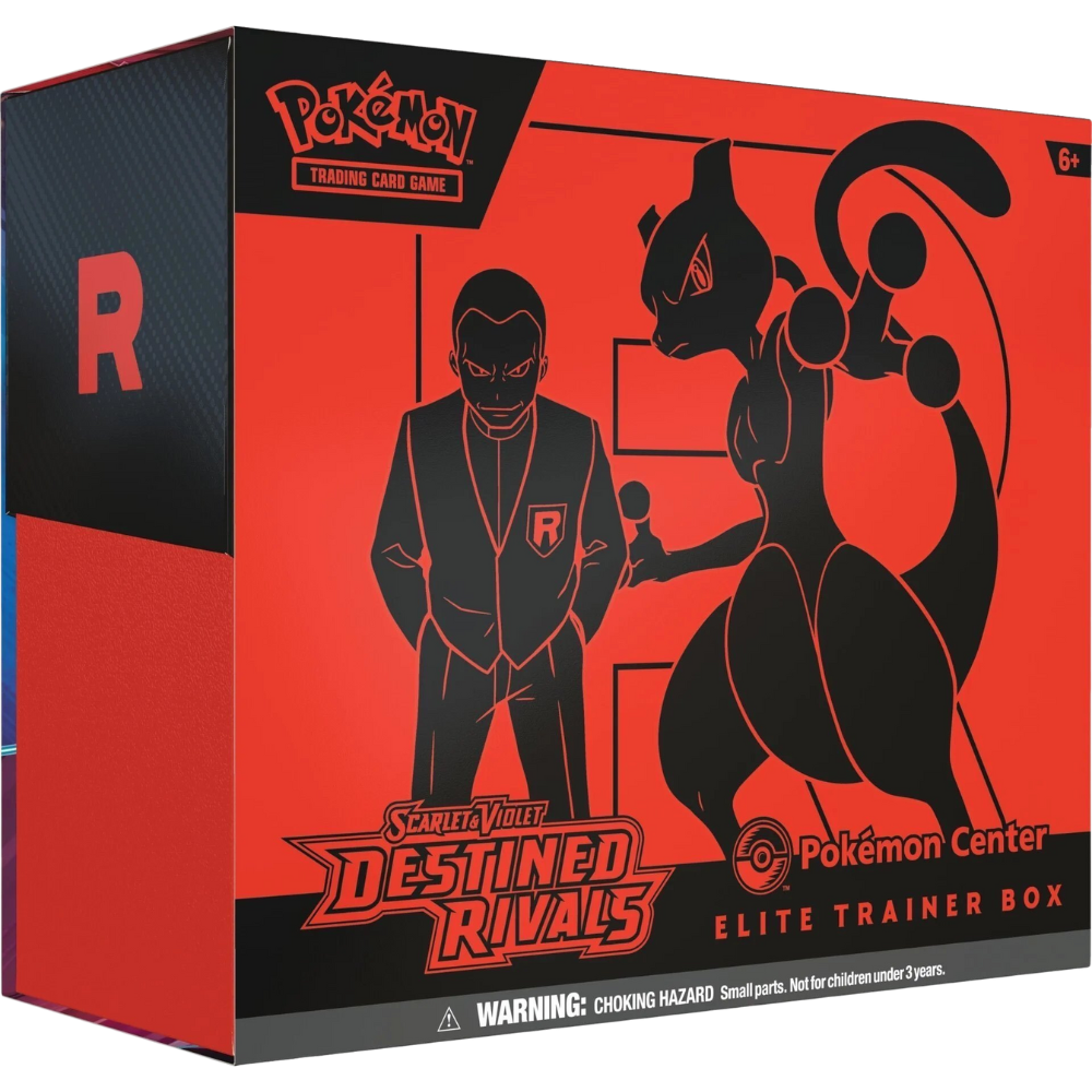 Pokémon Trainers, be on high alert! The nefarious Team Rocket is setting its latest plan into motion, and heroic Trainers are racing to stop it. Join forces with the likes of Cynthia and Garchomp ex, Ethan and Ho-Oh ex, or Arven and Mabosstiff ex… Or reconsider your loyalties and fight alongside Team Rocket’s Pokémon like Mewtwo ex—under the command of Giovanni! Choose a side, assemble your allies, and battle boldly in the Pokémon TCG: Scarlet & Violet—Destined Rivals expansion!